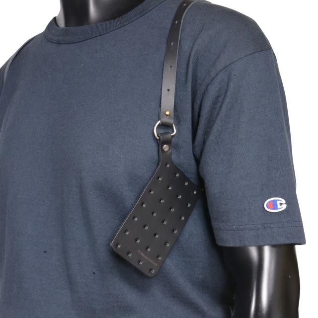 イタリアに本社を置くバスティネリナイフ社製のレザーショルダーハーネスです。ナイフシースを小脇部分に取り付けることができます。約13×7.5cm(縦×横)の取り付けシートには約2cm間隔で28個の穴が開いているので様々な形状のシースに対応。
