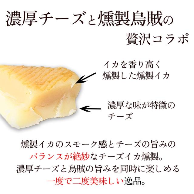 | 商品案内 | 香り高い燻製イカを濃厚チーズに乗せちゃいました。 ナチュラルチーズの濃厚な旨みと香り高い燻製いかの絶妙なバランスをお楽しみください。 保存にも便利な個包装タイプ。 パカっとあけてそのままお召し上がりいただけます。 | ||||||||||