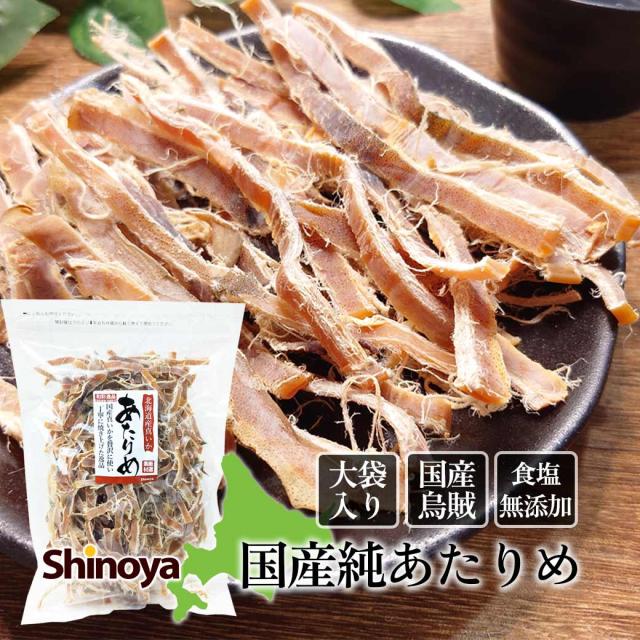| 商品案内 | 北海道の新鮮な真いかの胴のみを使用したあたりめ。 食塩や添加物等は一切入っておりません。 国産のイカの旨みのみで勝負。 外国産のあたりめに比べ、旨みが深く、味が長続きするのが特徴です。 極上のあたりめ、ぜひご賞味ください。 |