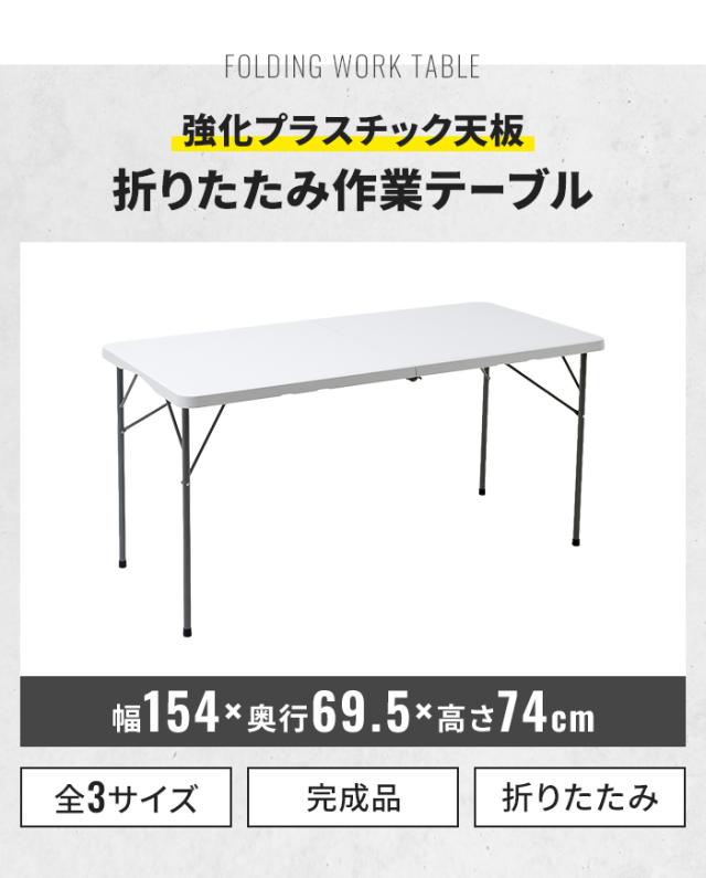 【値下げ】 折りたたみテーブル 作業台 ワークテーブル 幅154cm 強化プラスチック 軽量 丈夫 耐荷重100kg 持ち手付 折り畳み アウトドア キャンプ BBQ DIY 園芸 ホワイト