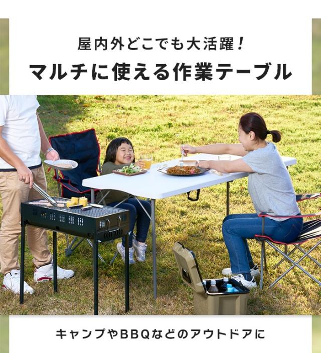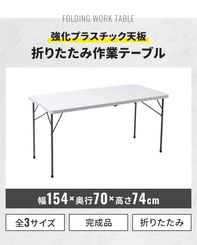 幅154cm ワイド 作業台 折りたたみ ワークテーブル 持ち運び 軽量 頑丈 耐荷重100kg 強化プラスチック 丈夫 園芸 DIY 工作台 アウトドア キャンプ バーベキュー 梱包 机 ホワイト