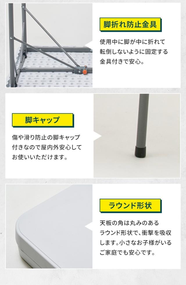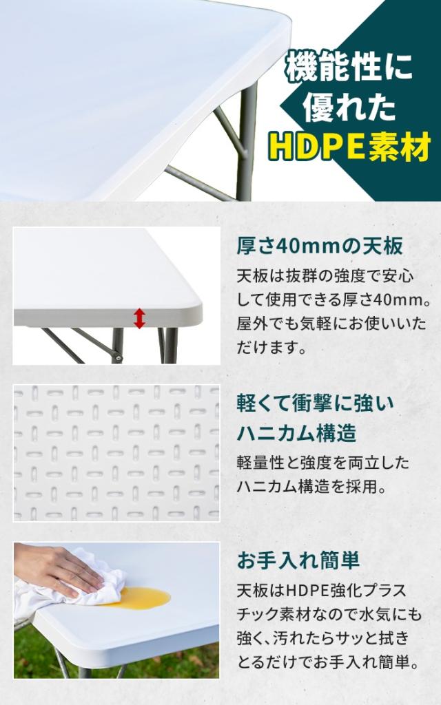 ・強化プラスチック(HDPE)天板で軽量かつ丈夫