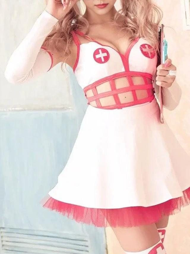 ☆男性受けナンバー1の看護婦コスチュームは大胆谷間魅せと可愛いカットアウトデザインで指名数急上昇のキャバ嬢さん必見コスプレ♪