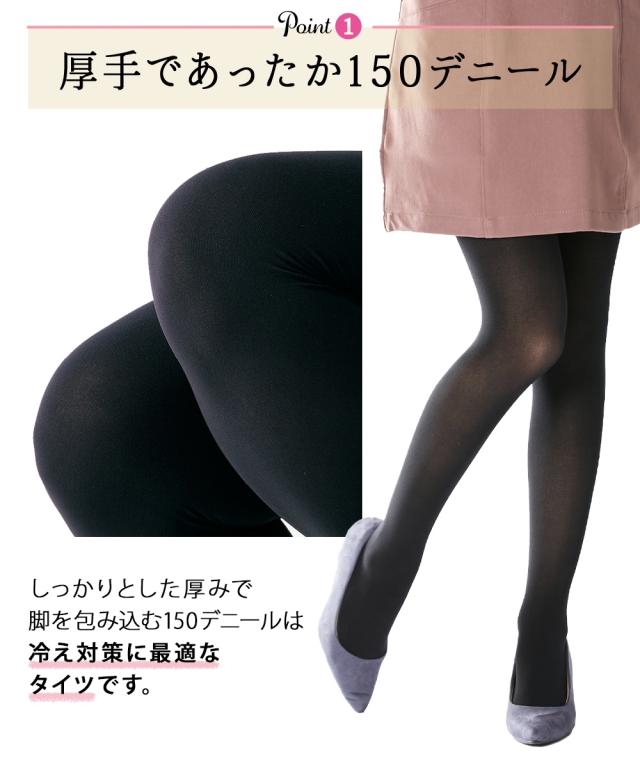 しっかり厚手であったか。防寒対策にぴったりの150デニールタイツ。お客様の声にお応えして、ずれ落ちにくい設計に改良しました。毎日使いたいものだから、まとめ買いでお得にGET!両面マチ付ではきやすさも◎