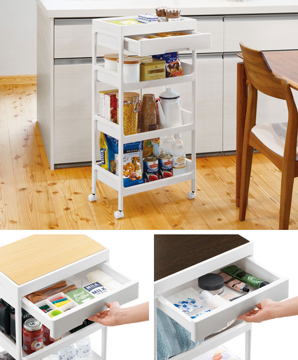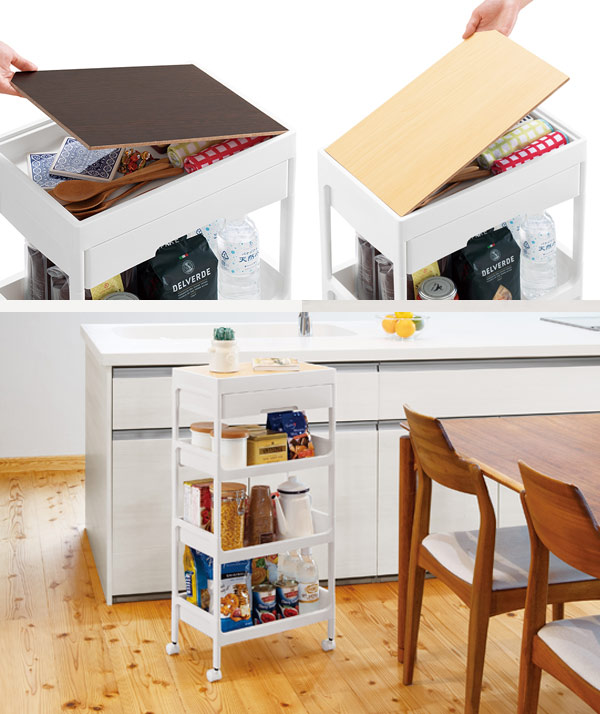 天板の色が変えられる!収納力抜群のキャスター付きワゴン
