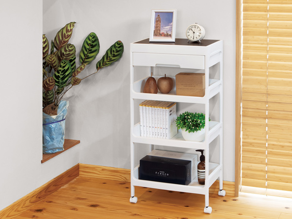 部屋に合わせて色が選べるワゴン4段
