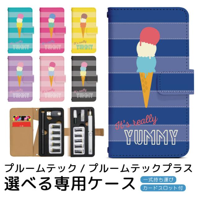 プルームテックケース 手帳型 プルームテック プルームテックプラス ベルトあり 手帳型ケース 低温加熱式タバコ ケース Ploom TECH+ プルームテックカバー プリント 手帳 カバー Ploom TECH 携帯ケース オリジナル デザイン ボーダーアイスクリーム 携帯カバー pps044