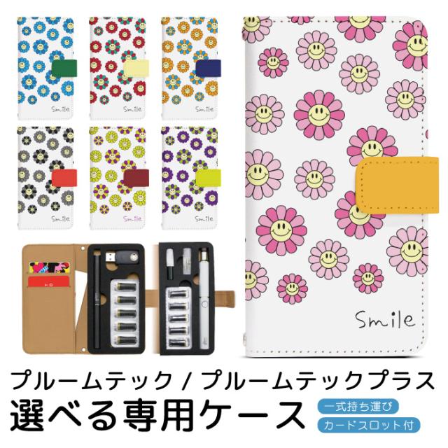 プルームテックケース 手帳型 プルームテック プルームテックプラス ベルトあり 手帳型ケース 低温加熱式タバコ ケース Ploom TECH+ プルームテックカバー プリント 手帳 カバー Ploom TECH 携帯ケース オリジナル デザイン smileフラワー 携帯カバー pps043