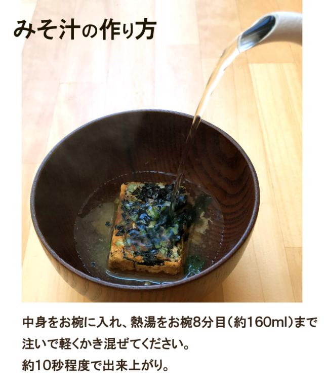 ■原材料名:米みそ(国内製造)、卵、たまねぎ、ほうれん草、みりん、乾燥わかめ、鰹節エキス、デン粉、酵母エキスパウダー、デキストリン、乾燥ねぎ、こんぶ粉末、しいたけエキス / 豆腐用凝固剤、酸化防止剤(ビタミンE)