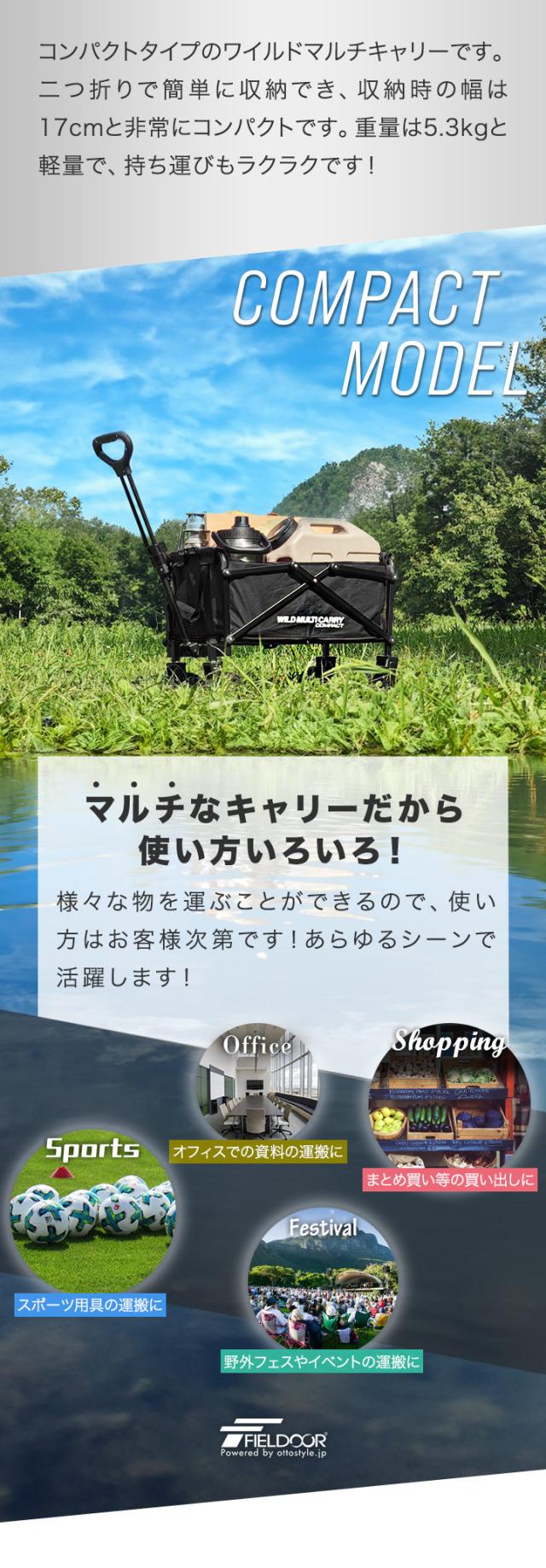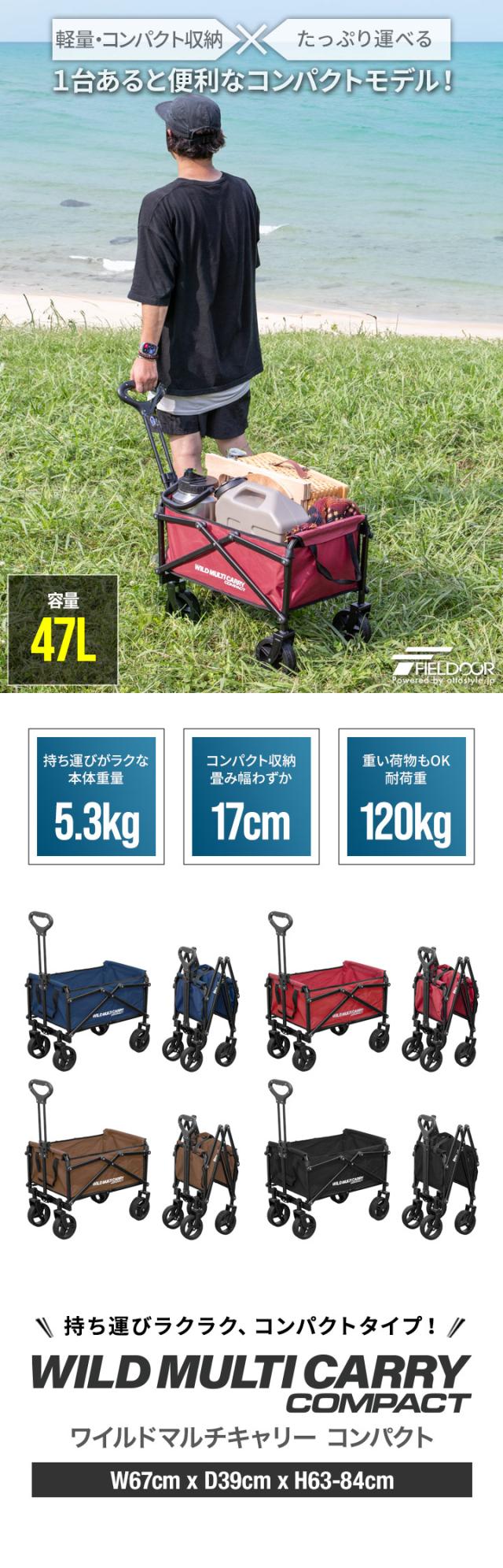 FIELDOOR アウトドアワゴン キャリーワゴン ミニ 小型 軽量 47L 折りたたみ キャリーカート ワイルドマルチキャリー コンパクト 4輪 折りたたみカート 台車 アウトドア キャンプ レジャー お買物 頑丈 簡単 便利 耐荷重120kg 1年保証 送料無料