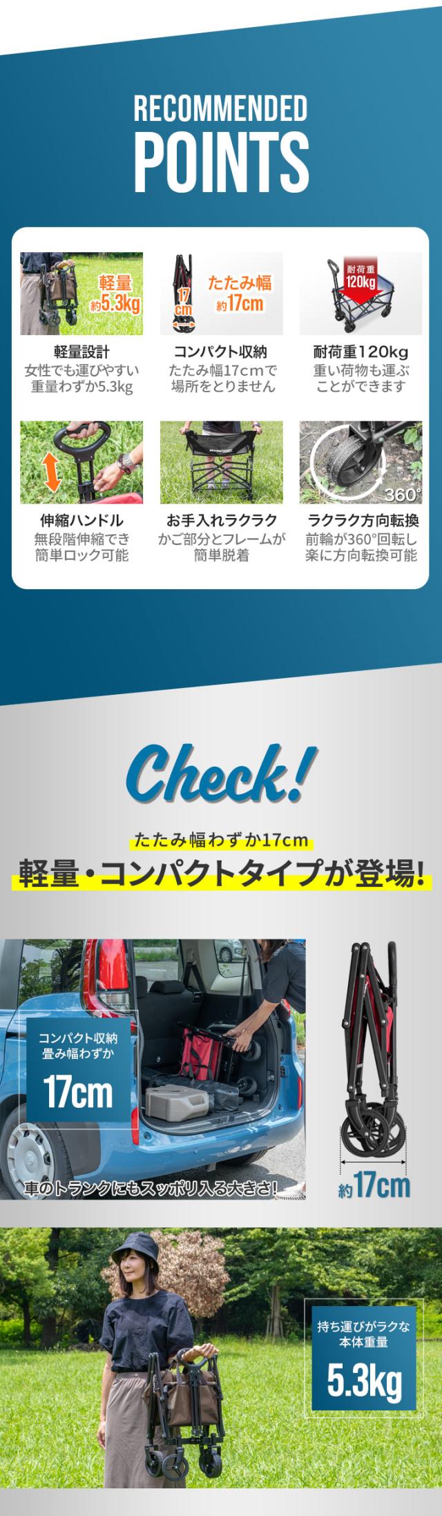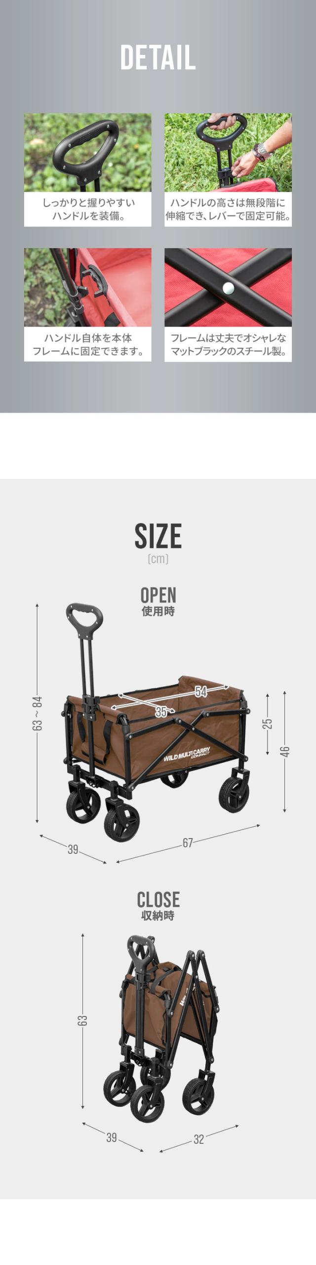 | サイズ: ・本体 : (約)長さ67cm×幅39cm×高さ63〜84cm ・かごの寸法 : (約)長さ54cm×幅35cm×深さ25cm ・折りたたみ時 : (約)長さ32cm×幅39cm×高さ63cm |