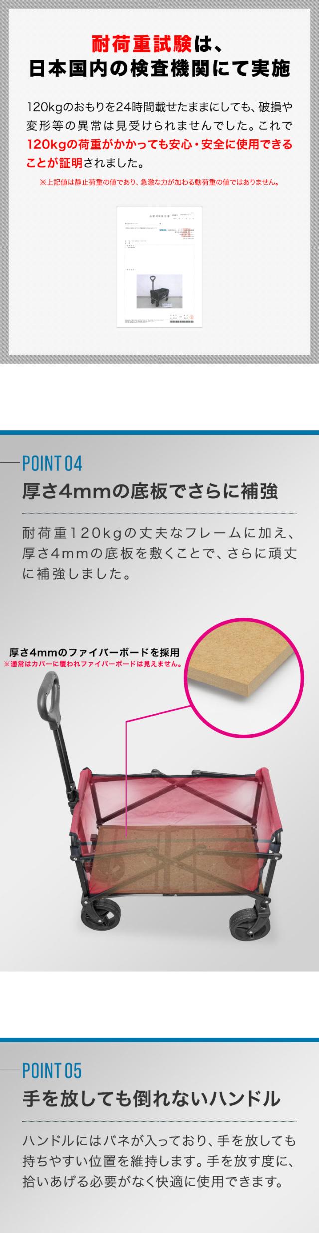 - 運動会などで重い荷物を運ぶのに購入しました。まだ使っていませんが、クーラーボックスとちょっとしたものが入る大きさで、満足しています。