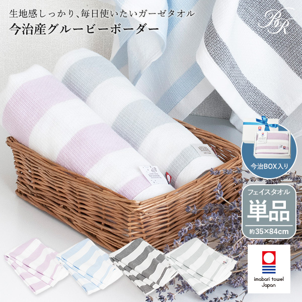 (ギフト) 今治タオル ガーゼ フェイスタオル 1枚 グルービーボーダー タオル ギフト ※紙袋付き 敬老の日