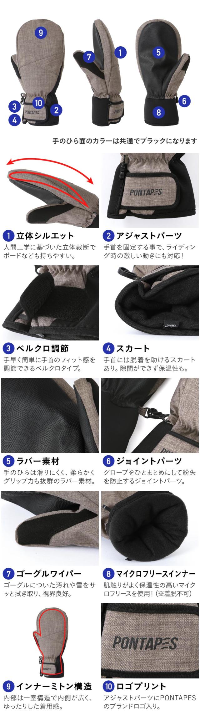 インナー付 スノーボード スキー ミトン グローブ スノーボードグローブ スキーグローブ メンズ スノボ グローブ 23-24 PGB-055M