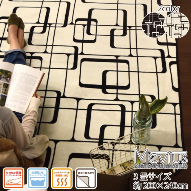ラグ ラグマット 3畳 洗える 軽量 約200×240cm 幾何学 モダン ホットカーペットカバー こたつ敷き 在宅勤務 コンパクト メビウス