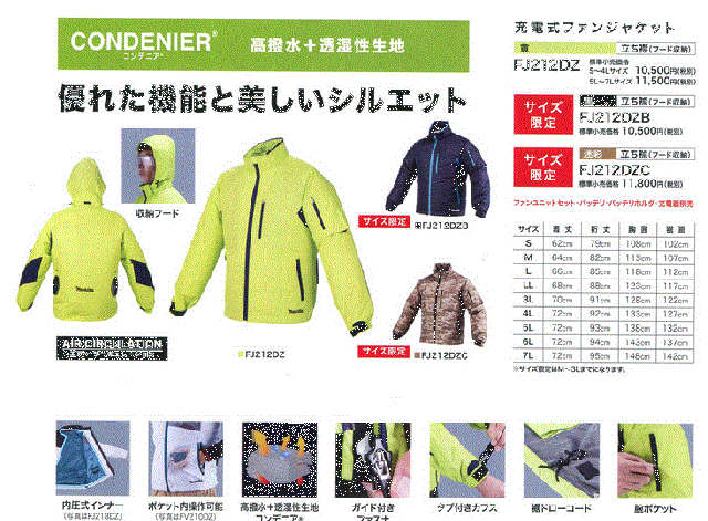 マキタ FJ212DZ/B CONDENIER ファンジャケット用ジャケットのみ 立ち襟(フード収納)