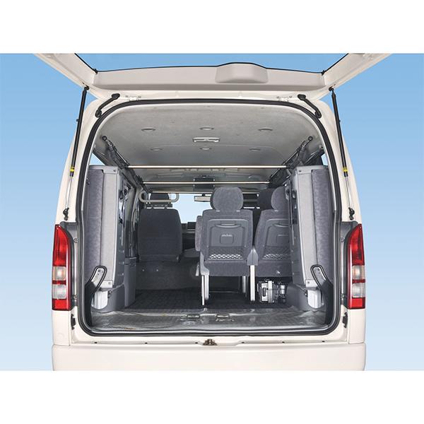 ●ハイエース・ワゴンGLに装着するとハンガーバーを使用しない時に天井まで上げられ邪魔になりません。