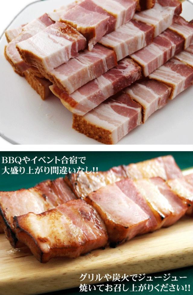 | 原材料名 | 豚バラ肉 食塩(岩塩)還元澱粉糖化物 乳蛋白 粉末大豆蛋白 カゼインNa 卵白 増粘多糖類 調味料(アミノ酸等) 発色剤(亜硝酸塩Na) リン酸塩Na 酸化防止剤(ビタミンC) |