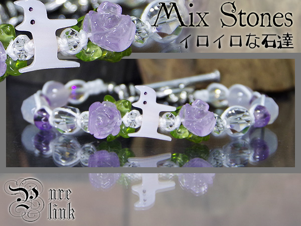 ニャンコ(猫)と薔薇と色々な魔石たちのハンドメイドブレスレット♪2