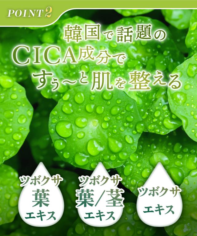 【韓国で話題のCICA成分配合】 ツボクサの葉、茎エキスですぅっとお肌を整えます。