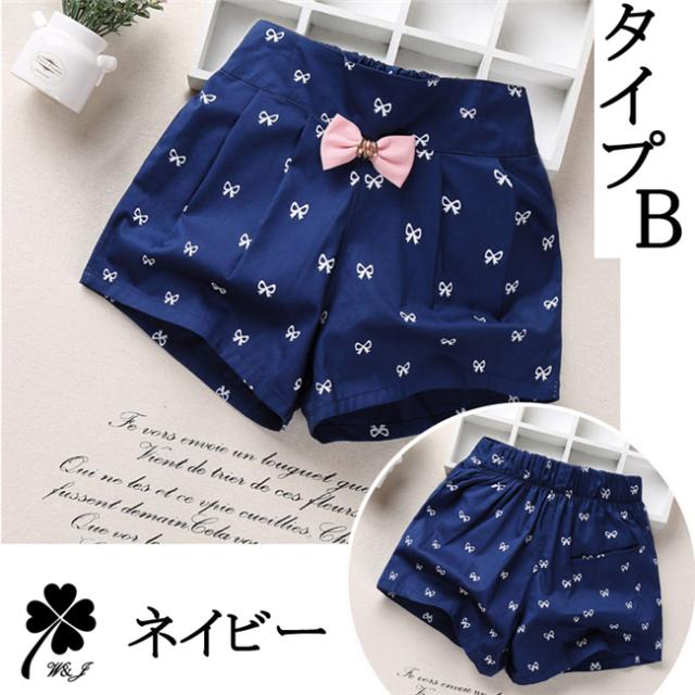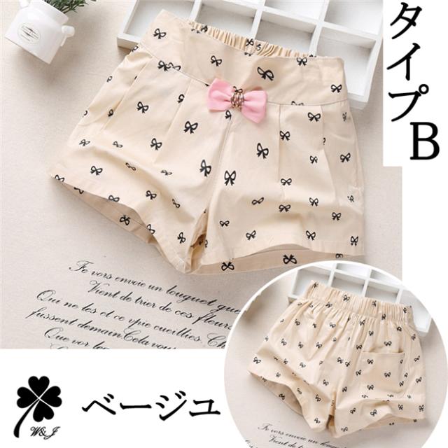 子供服 リボン付け ハイウエスト 女の子 ショートパンツ 100-150cm ジュニア 春物 ストレッチ 半ズボン ショーパン ハイウエスト風 プチテリア メール便