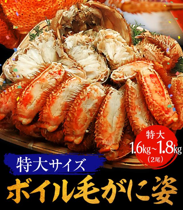 魚奏 ボイル毛ガニ 姿 特大 2尾 1.6〜1.8kg 送料無料 訳あり かに カニ 蟹 毛蟹 カニみそ かにしゃぶ かに鍋 お取り寄せ BBQ バーベキュー
