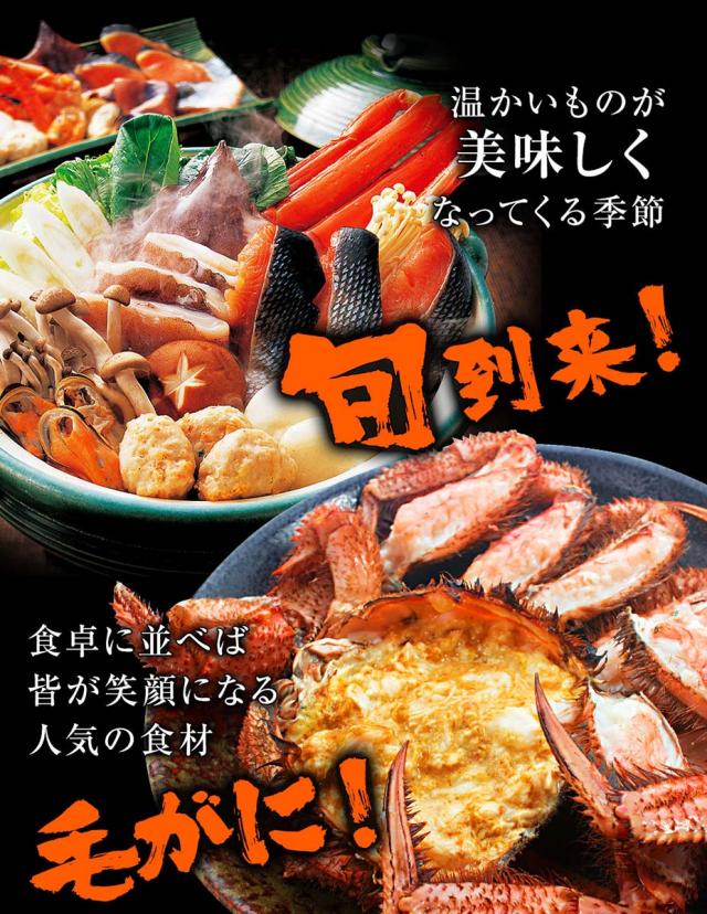 食卓に並べば、皆が笑顔になる人気の食材、毛ガニです。
