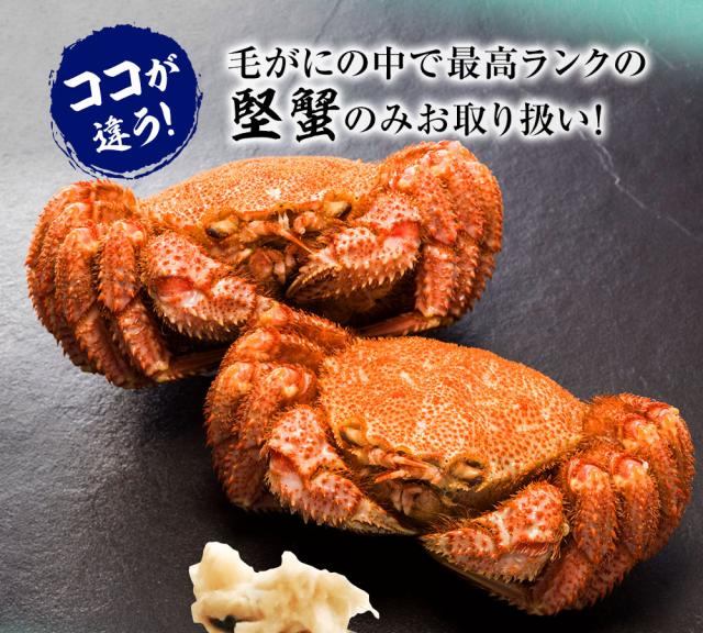 人気のボイル毛がに!特大堅蟹船凍品の一級品です! 身入り、ミソばっちり、折れなしの超良品! 是非、旬の味覚をご堪能ください!