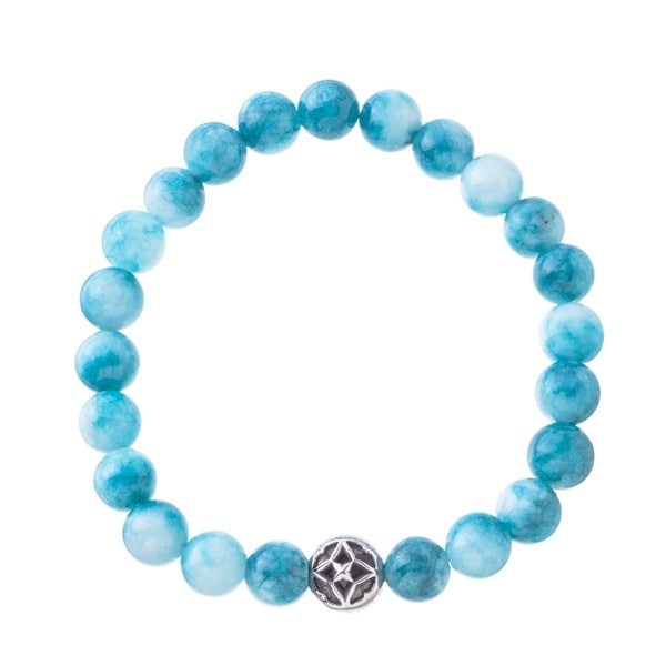 ブルークォーツとミルキークォーツを織り交ぜた、クォーツが美麗な数珠ブレスレット。