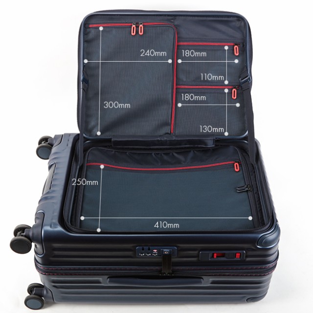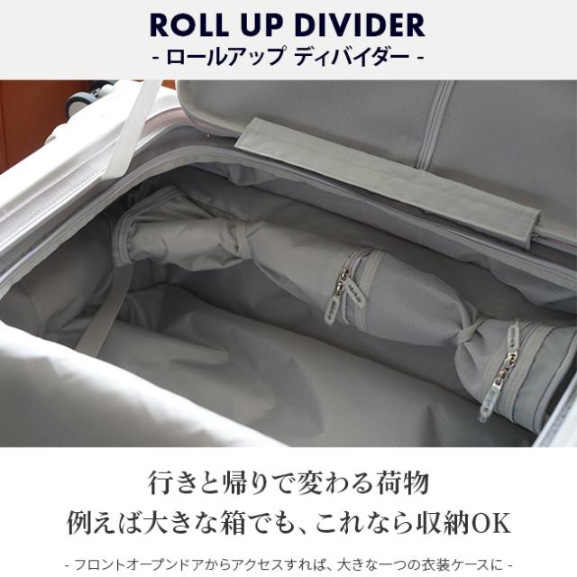 | GULL-WING FRONT OPEN DOOR ドアタイプの横開きフロントオープン方式を採用。狭い場所でもスーツケースを広げることなく荷物にアクセスできます。フラップ側にも大小ポケットを配置し、アイテムの大きさに合わせて整理収納可能です。 ROLL UP DIVIDER メイン収納内の中仕切りは、ロールアップしてフックで留めることができます。収納ボックスのように1ROOM として使用可能な構造で、厚みのある荷物も収納可能です。行きと帰りで変わる荷物の状況に合わせた使い分けができます。 BRAKING SYSTEM ワンタッチでキャスターのブレーキがオン・オフ可能な、軽い操作感のスライドスイッチ・リリースボタンを装備しています。電車やバスなどでのストレスを軽減します。 SILENT DOUBLE CASTER 耐久性にも定評のあるHINOMOTO製の双輪キャスターに消音タイヤを組み合わせることで、より静かで滑らかな安定感のある走行が可能です。 BOTTOM HANDLE 車両の棚、空港のターンテーブルなどでスムーズに安全にスーツケースを上げ下げできるよう、ボディの下部にもハンドルを装備しています。 TSA DOUBLE DIAL LOCK メインファスナーとフロントファスナーをまとめて施錠・解錠することができます。開閉はそれぞれ単独で操作可能です。カギの持ち運びが不要なため、紛失の心配もありません。 |