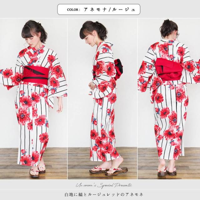 送料無料 夏新作 女性浴衣 レディース浴衣 浴衣 単品 浴衣単品 仕立て上がり レトロ 女性用 フリー ホワイト レッド 花柄 変わり織