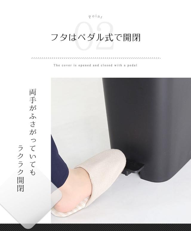 フタはべダル式で開閉、両手が塞がっていても簡単に開閉できます。