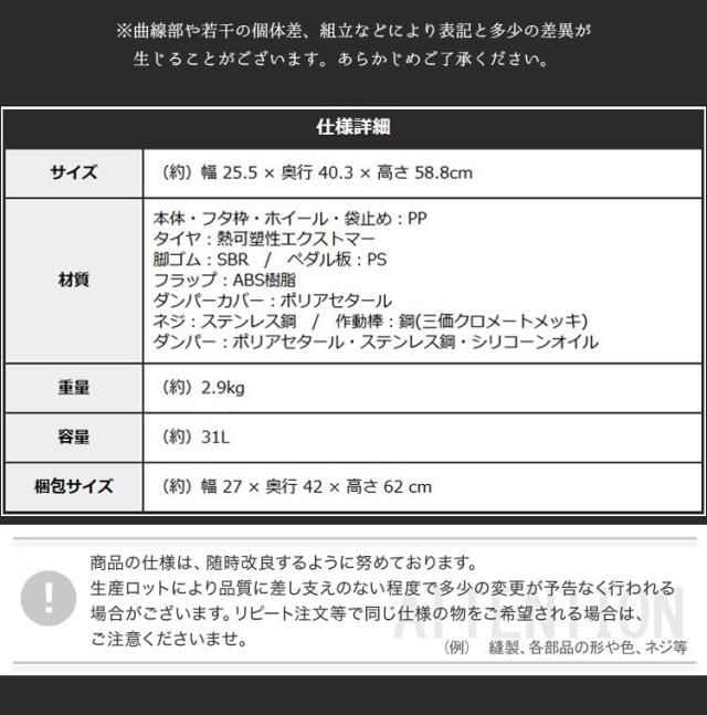 ダストボックス ペダル式ゴミ箱 分別ごみ箱 日本製 30L 30リットル スムースキャスター付き