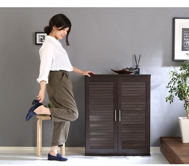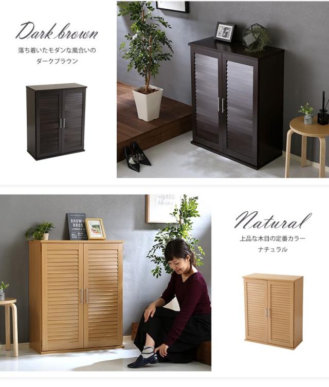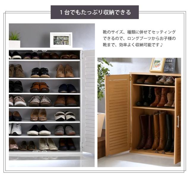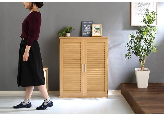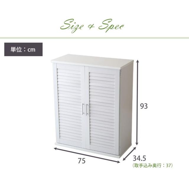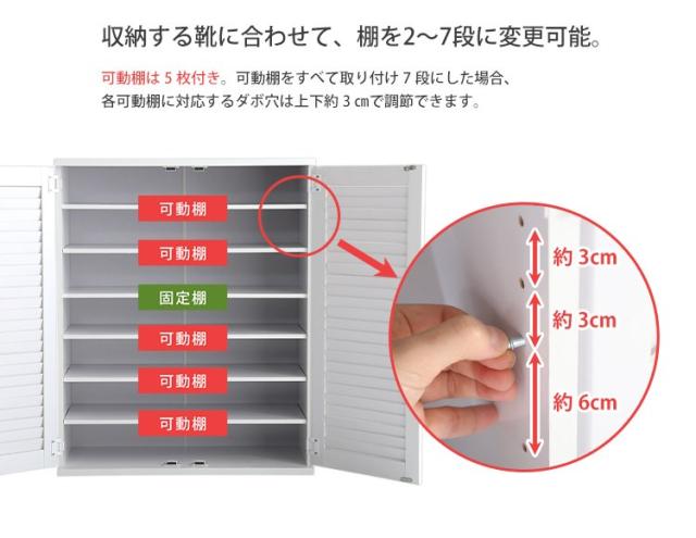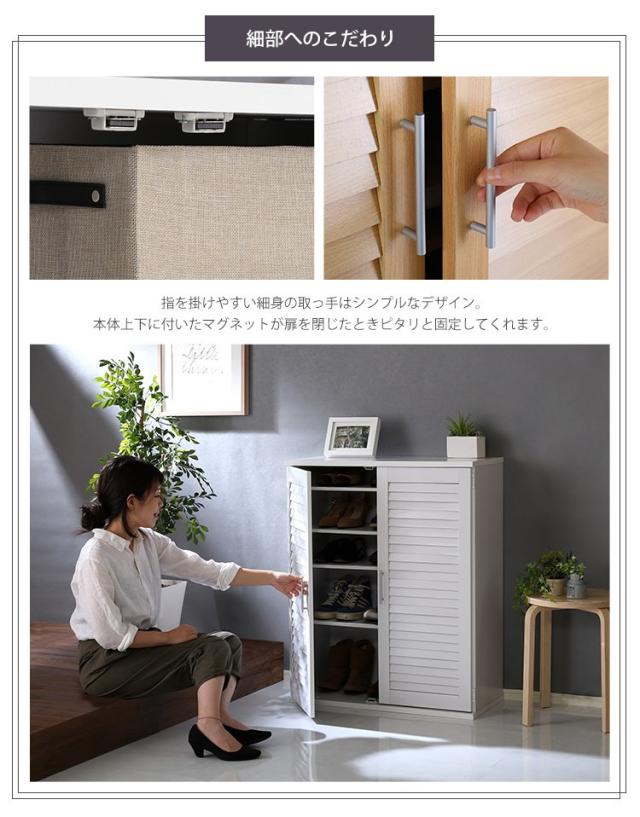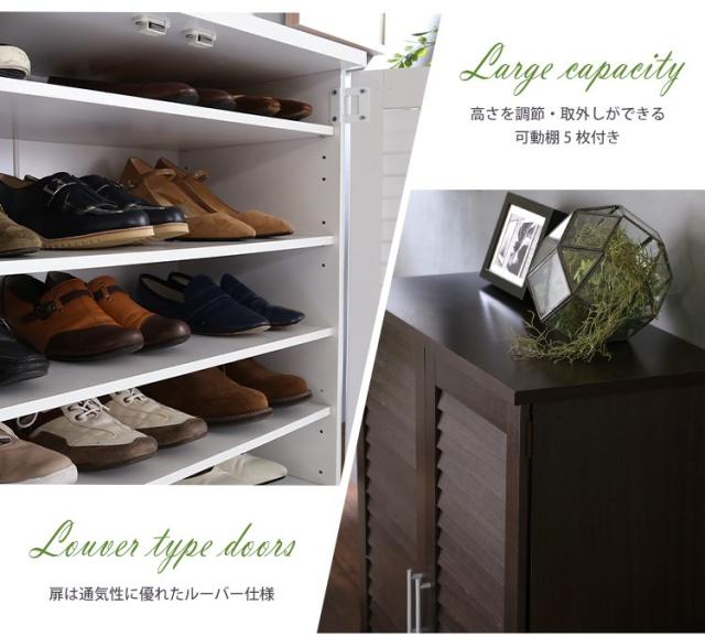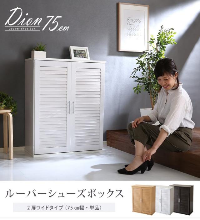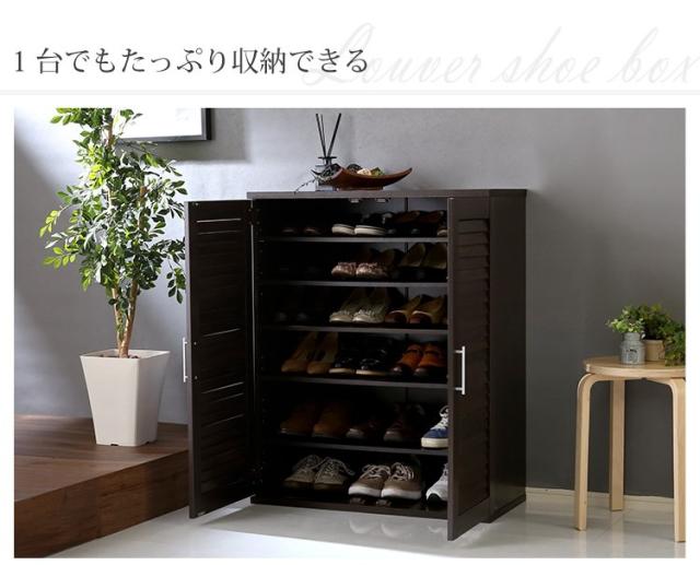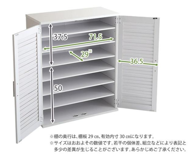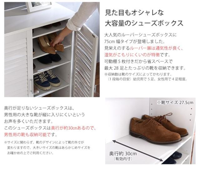 下駄箱 シューズボックス 木製 玄関収納 ルーバー式扉 可動棚5段 幅75cm 奥行内寸30cm