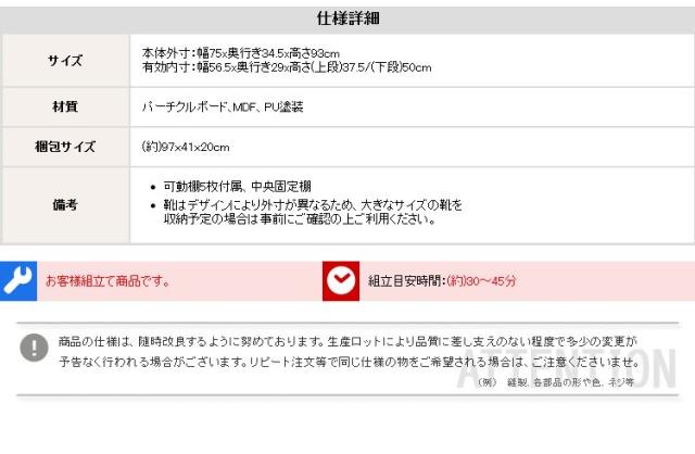 サイズ:(約)幅75x奥行34.5x高さ93cm