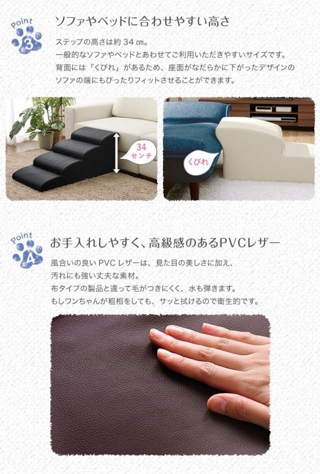 ドッグステップ 小型犬用スロープ 階段 2段 ベッド ソファー 段差解消グッズ 日本製 PVCレザー