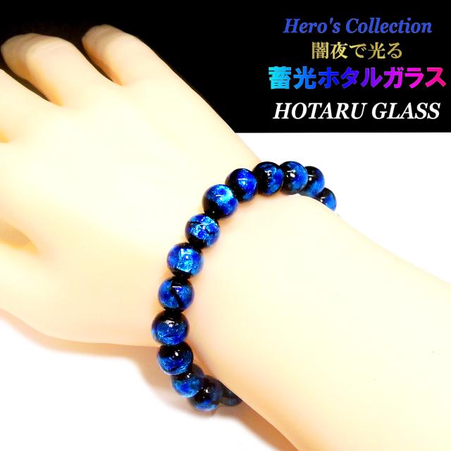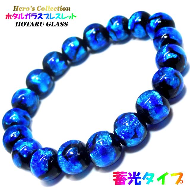 【送料無料】 光る ホタルガラス ブルー 10mm 沖縄 土産 人気 ブレスレット メンズ レディース 誕生日 お祝い プレゼント 男性用ブレスレット 女性用ブレスレット