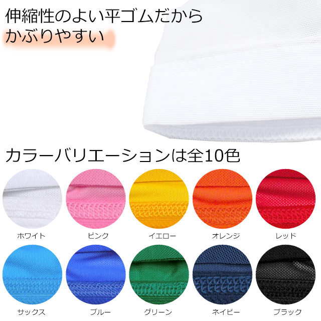 | 素 材 | ホワイト/サックス/オレンジ/ピンク/レッド/イエロー 本体:ナイロン-88%/ポリウレタン-12% ネイビー/ブルー/ブラック/グリーン 本体:ナイロン-80%/ポリウレタン-20% |