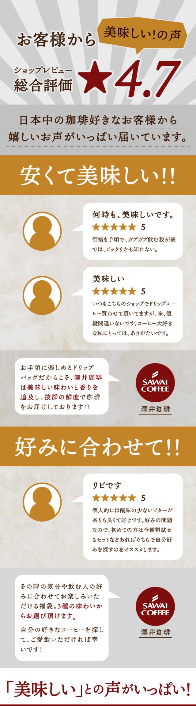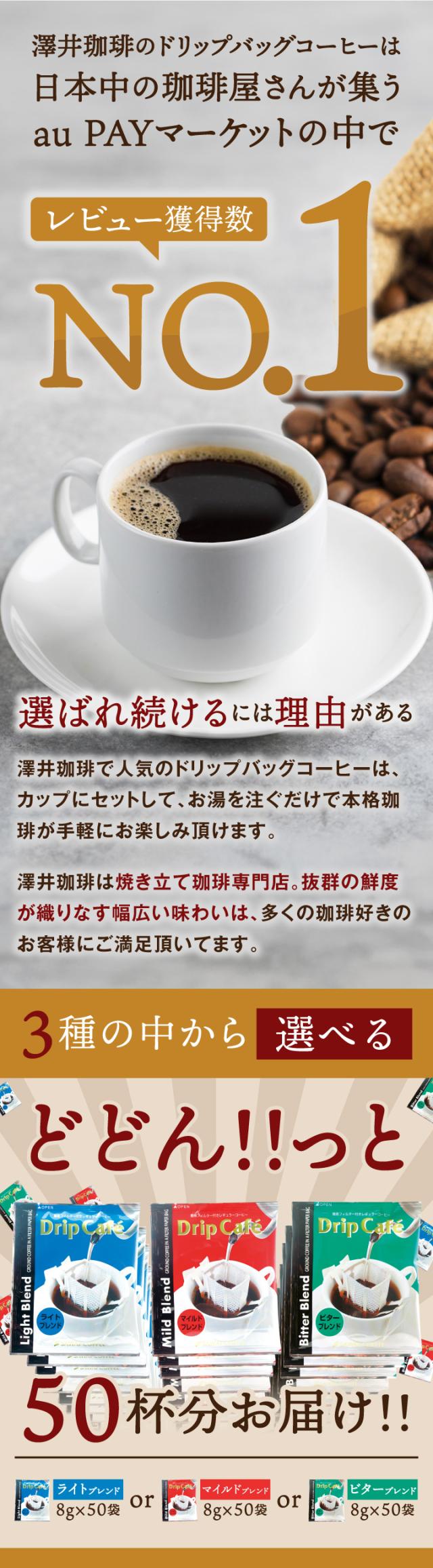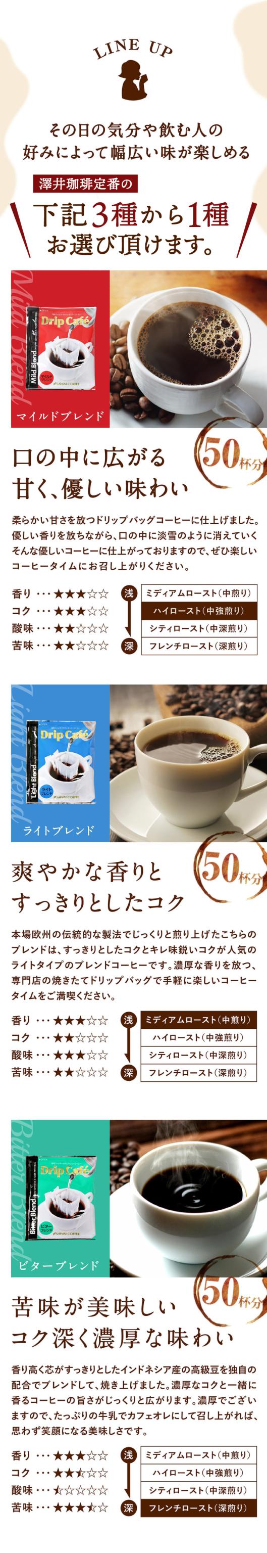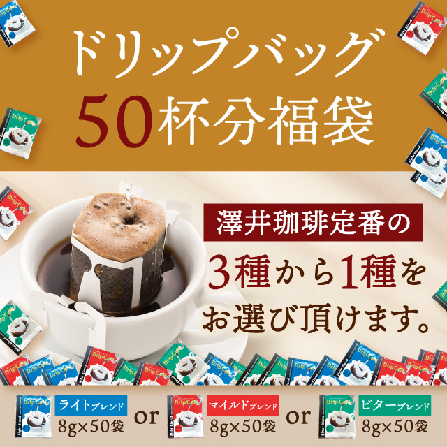 【澤井珈琲】ドリップバッグコーヒー 選べる3種お試し50杯分福袋(ライトブレンド/マイルドブレンド/ビターブレンド/ドリップコーヒー)