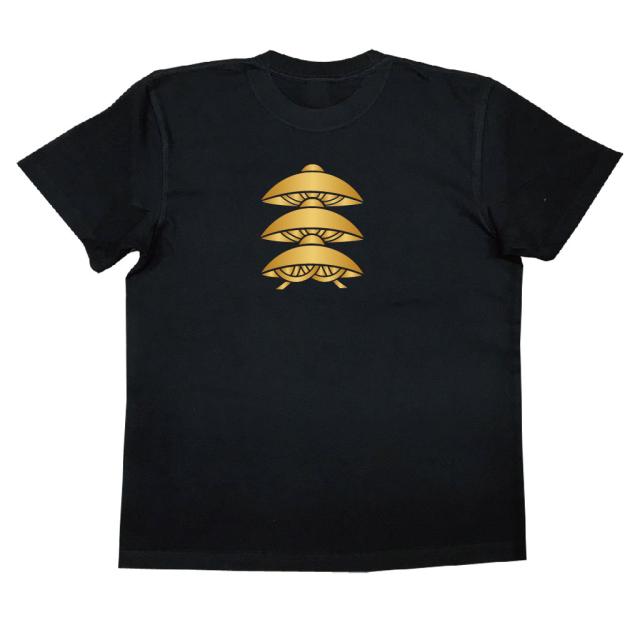 家紋TシャツのThe C'mon 【三階笠】 戦国武将 メンズ 半袖|おもしろTシャツ tシャツ 面白いtシャツ プレゼント お笑いTシャツ ジョークTシャツ おもしろ雑貨 俺流 パロディ 和柄 黒 長袖 外国人 お土産