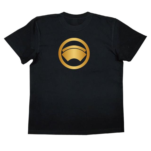 家紋TシャツのThe C'mon 【丸に重ね地紙】 戦国武将 メンズ 半袖|おもしろTシャツ tシャツ 面白いtシャツ プレゼント お笑いTシャツ ジョークTシャツ おもしろ雑貨 俺流 パロディ 和柄 黒 長袖 外国人 お土産