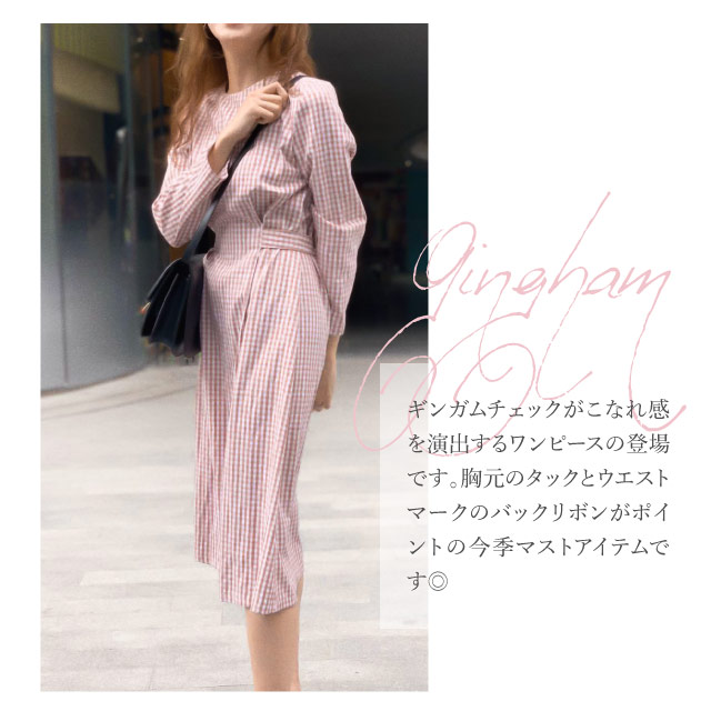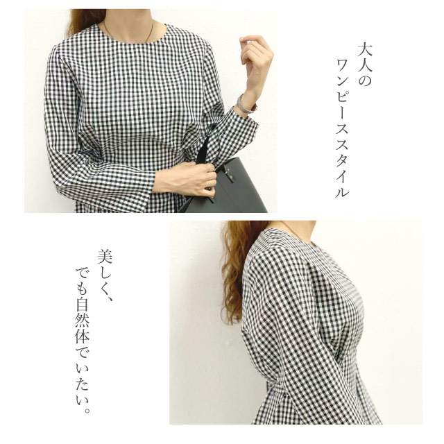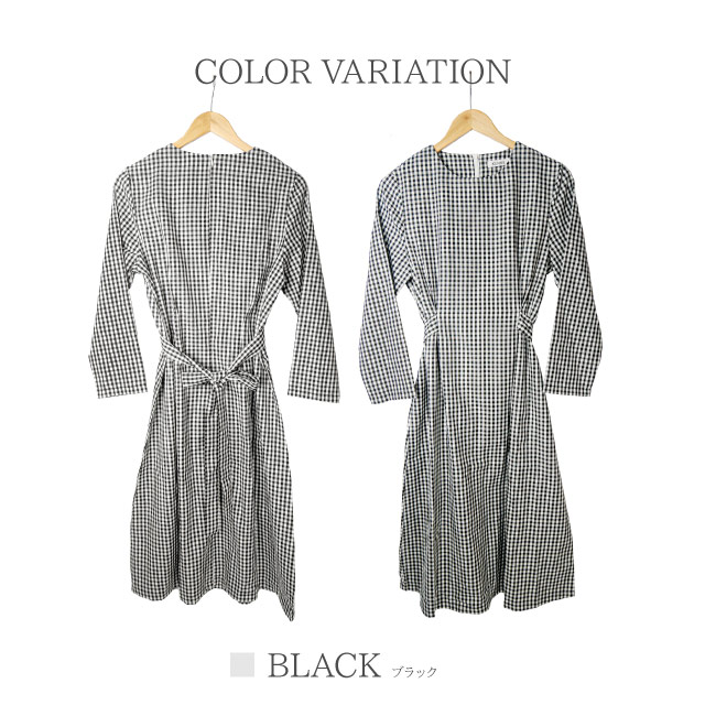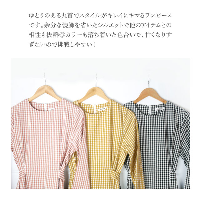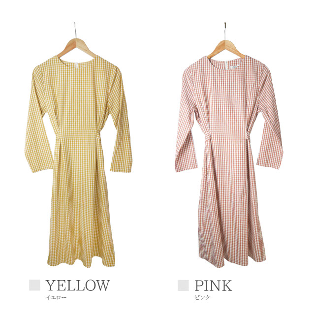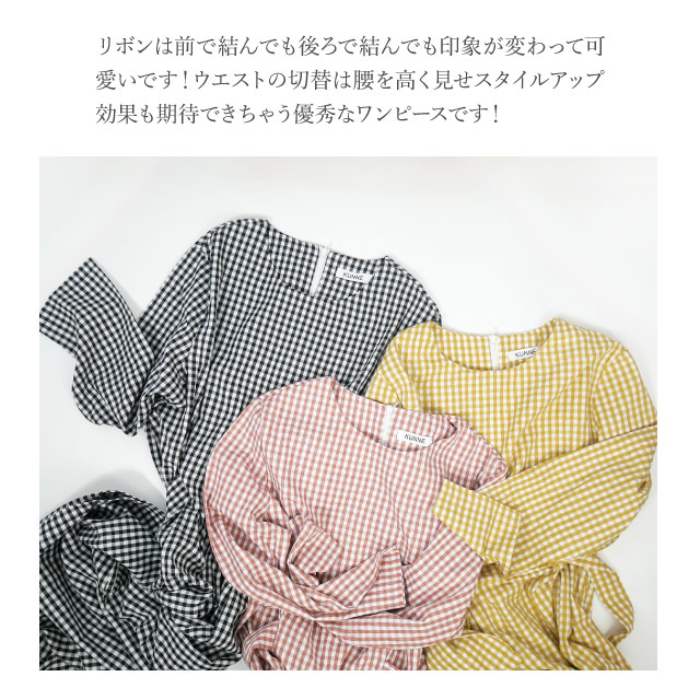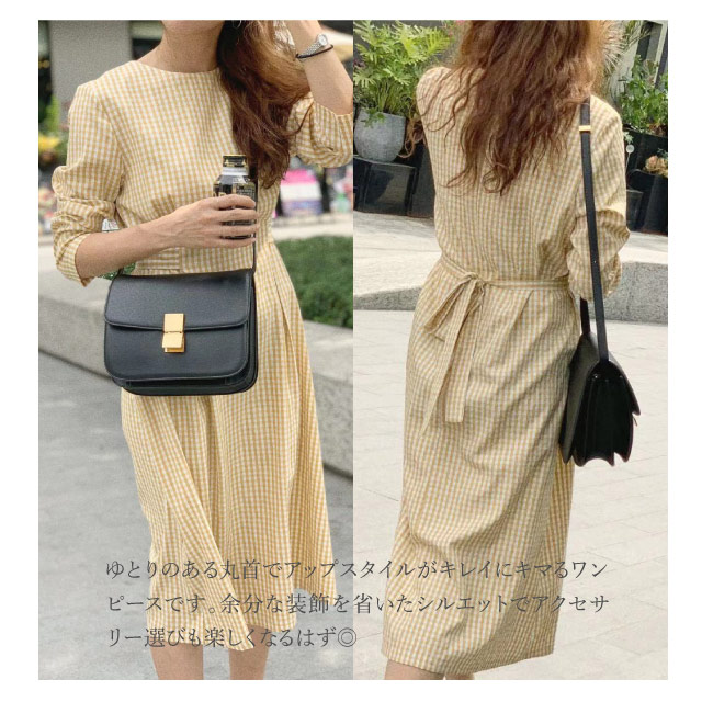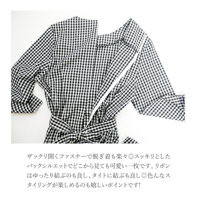 ワンピース レディース 秋 長袖 シャツ シャツワンピ チェック ウエストリボン ギンガムチェック 襟なし カジュアル きれいめ ミディアム丈 | シャツワンピース ロングワンピース ロング ロングワンピ ミディ丈 チェックワンピ 秋冬 バックリボン agesugi_sfa
