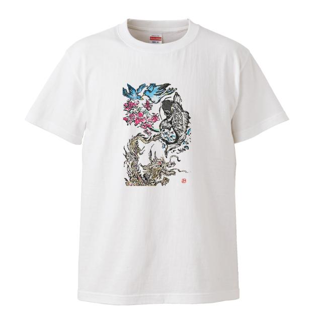 風人堂Tシャツ【風人堂-鯉-龍-桃-青い鳥】依知川伸一 漢字 文字 メッセージtシャツ tシャツオリジナル tシャツプリント 文字tシャツ 大きいサイズ 文字入り プレゼント 外国人 お土産 tシャツブランド メンズ 白 グッズ コラボ ジャズ 楽器 ベース 書道
