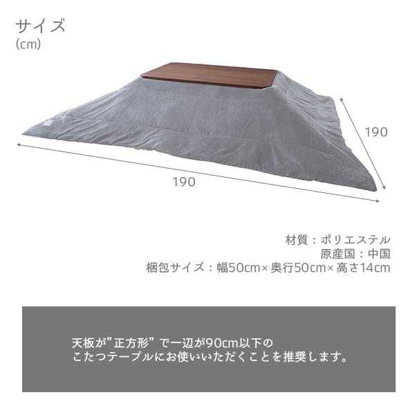 薄型シルエット こたつ布団 正方形 190×190 掛け 単品 送料無料 薄い こたつ用掛布団 薄掛け 薄手 省スペース おしゃれ かわいい グレー ネイビー