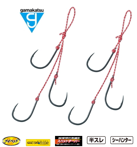 がまかつ 糸付サーベルポイント 3本鈎 2組入 Lサイズ / メール便可