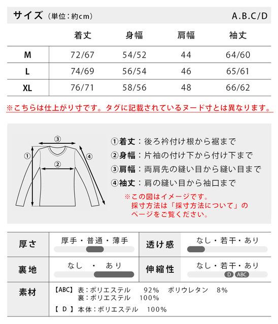 | A・B・Cタイプ・サイズ | 着丈 | 身幅 | 肩幅 | 袖丈 |