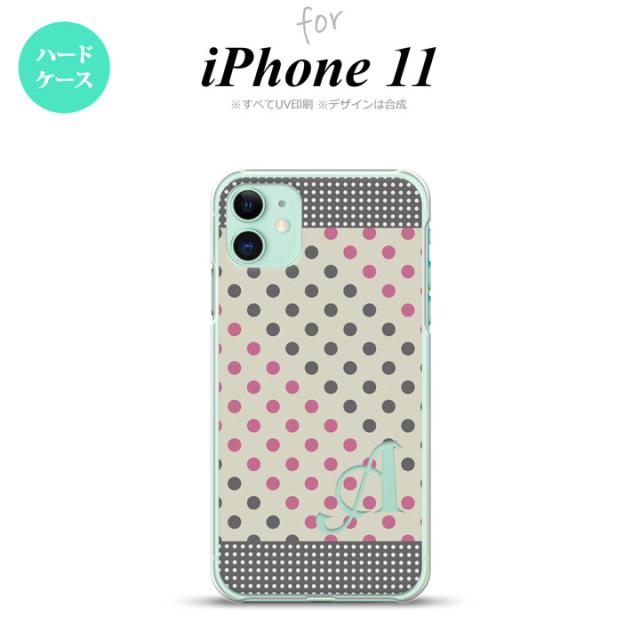 iPhone11 iPhone11 スマホケース ハードケース ドット 水玉 C グレー ピンク +アルファベット