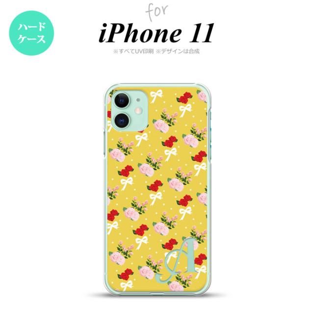 iPhone11 iPhone11 スマホケース ハードケース 花柄 バラ リボン 黄 +アルファベット