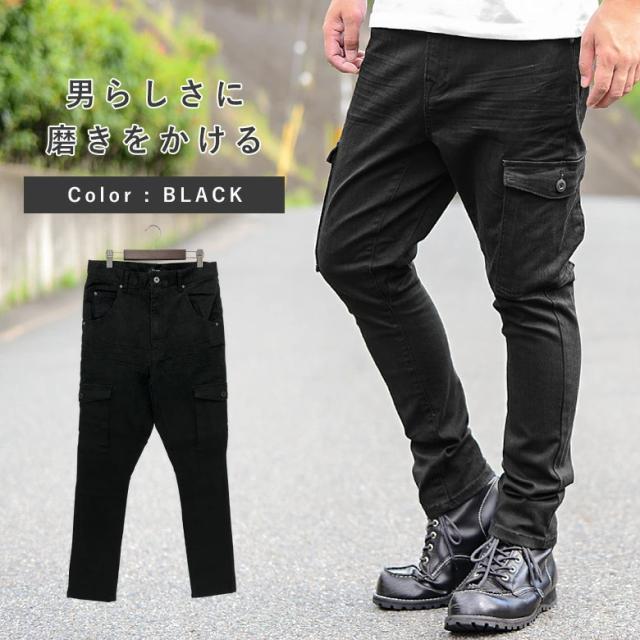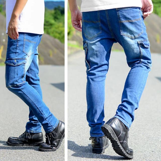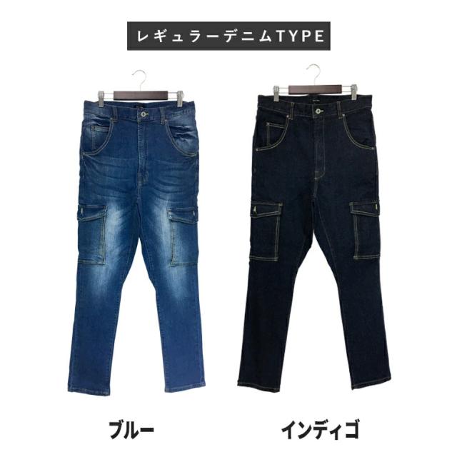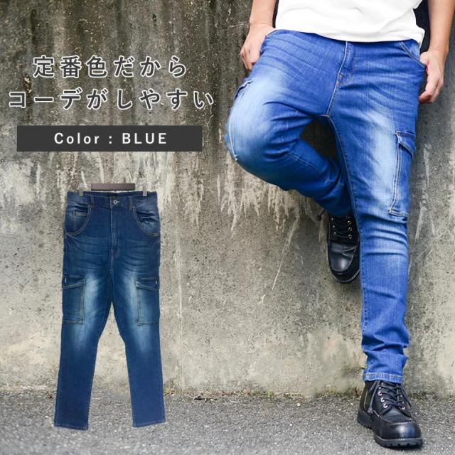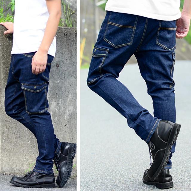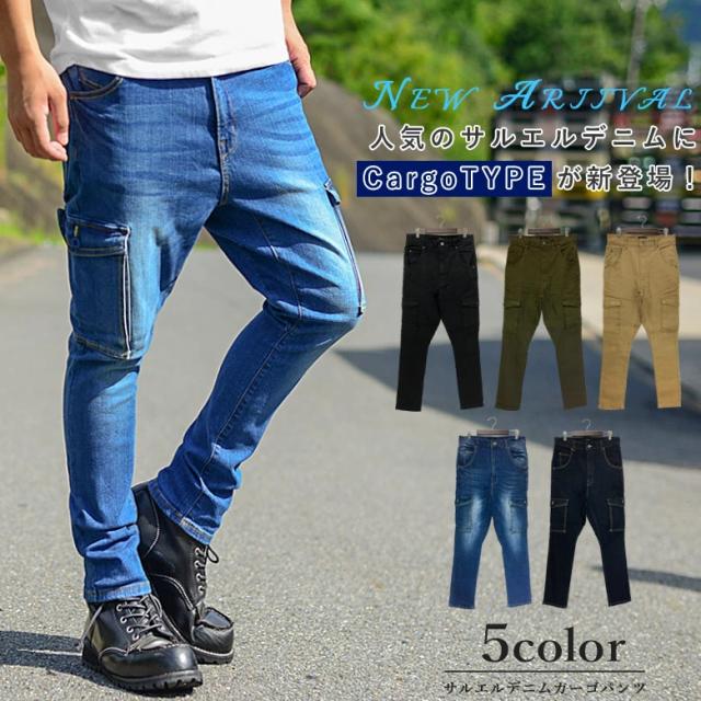 【閉店セール】メンズ デニムパンツ デニムカーゴ サルエルデニム 91-t200 スキニーデニム スリムパンツ ストレッチ カツラギ ブラック ベージュ カーキ ブルー インディゴ S M L XL サイズ YKKジップ ジーンズ ジーパン 細身 デニムカーゴ サルエルカーゴ