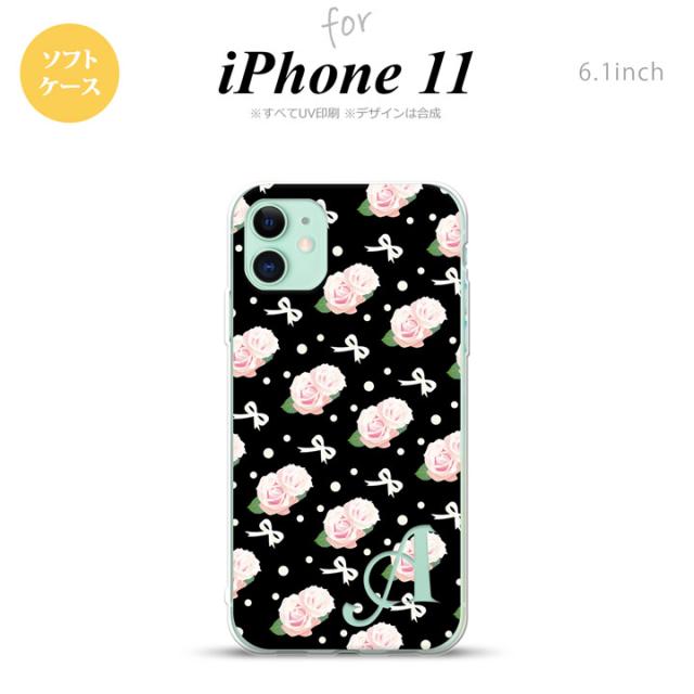iPhone11 iPhone11 スマホケース ソフトケース 花柄 バラ リボン 黒 +アルファベット